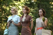 "Pan Am", "Der richtige Zeitpunkt." Der zwölfjährige Charlie ist ein Scheidungskind. Seit der Trennung seiner Eltern pendelt er zwischen zwei Kontinenten: den USA und Europa. Colette hat Mitleid mit dem Buben und beschließt, ihn zum Abendessen einzuladen. Beim Check-in in einem Hotel in Rom trifft Dean überraschend Ginny wieder, die sich mit dem Ende ihrer Beziehung nicht abfinden will. Derweil wird Kate unmissverständlich nahegelegt, sich von Niko Lonza zu trennen. Die Angst, ihre Tarnung könnte aufgeflogen sein, ergreift von Kate Besitz.Im Bild (v.li.): Margot Robbie (Laura Cameron), Christina Ricci (Maggie Ryan), Kelli Garner (Kate Cameron).Bild: © Canal+
