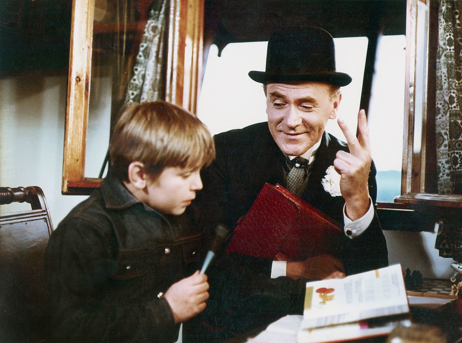 Pan Tau und der lange SonntagPan Tau (Otto Simanek, r) und Emil (Josef Filip) haben Probleme bei den Schularbeiten. Statt der Zaubermelone nimmt Pan Tau beim Kopfrechnen die Finger zu Hilfe.Bild: © rbb/WDR/Alena Cervená