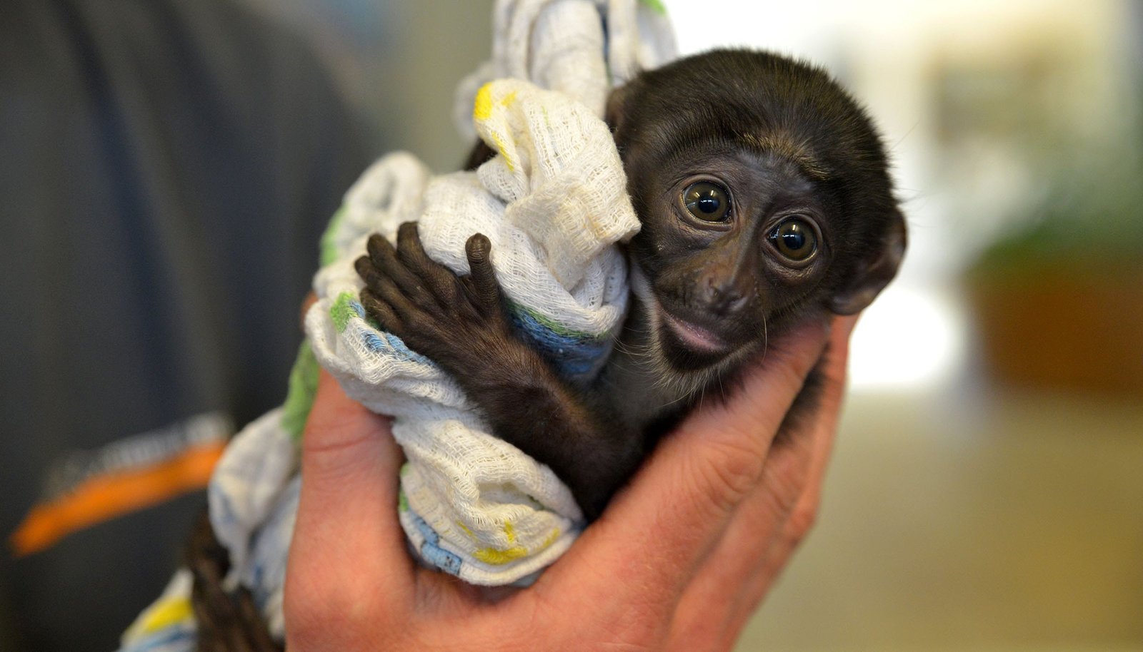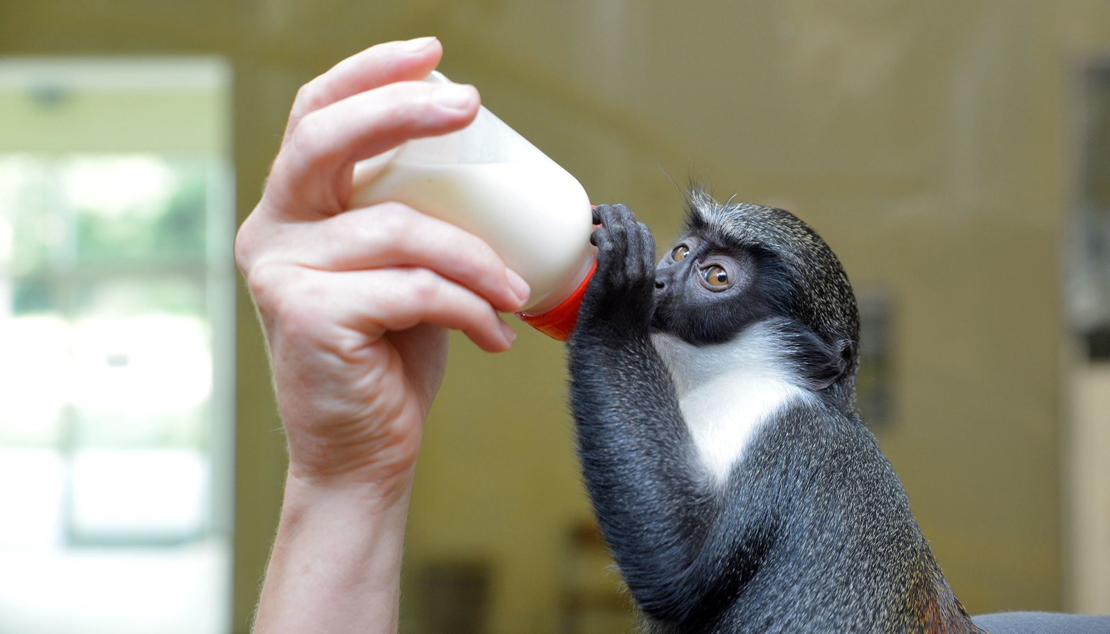 Folge 320Die Dianameerkatze Rhea wird von ihren Pflegern im Tiergarten mit der Flasche großgezogen.Bild: © rbb/Thomas Ernst
