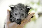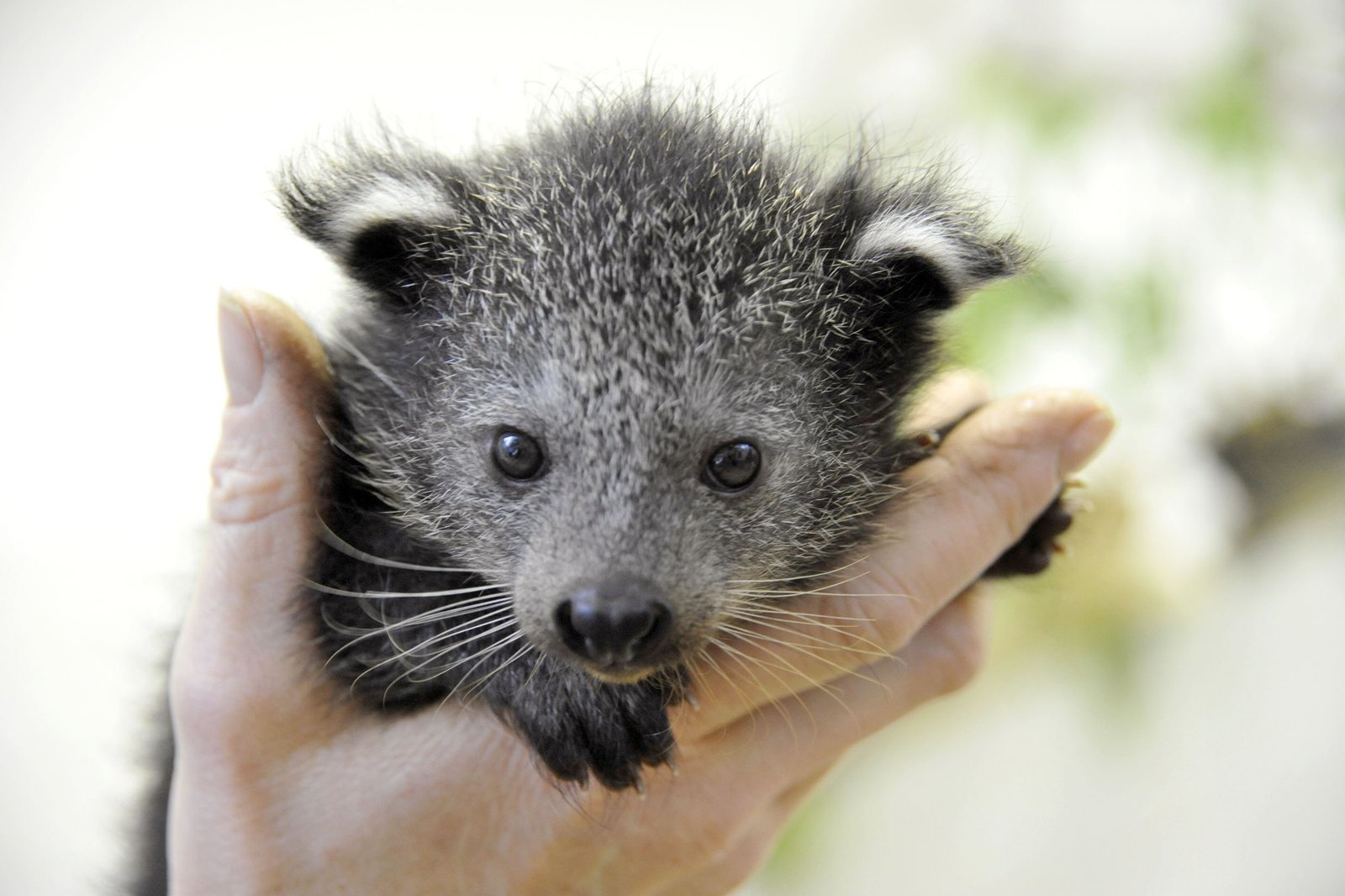 Folge 222ARD/rbb PANDA, GORILLA & CO., TEIL 222, "Geschichten aus dem Zoo Berlin und dem Tierpark Berlin", am Donnerstag (06.10.11) um 16:10 Uhr im ERSTEN. Dank intensiver Pflege hat sich der Binturong-Nachwuchs aus dem Alfred-Brehmhaus im Tierpark Berlin mittlerweile gut erholt. Aufgrund einer Gaumenentzündung konnten die beiden nicht bei ihrer Mutter trinken und sind deshalb lange Zeit untergewichtig gewesen. Sieben Wochen sind die Schleichkatzengeschwister jetzt alt. Täglich wird ihr Gewicht kontrolliert und über die weitere Zufütterung entschieden.Bild: © rbb/Thomas Ernst