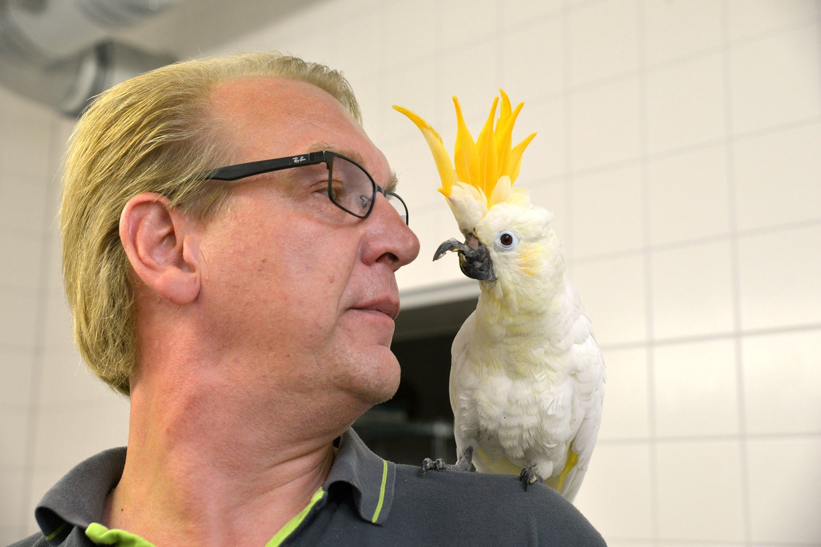 Folge 325Die Kakadu Dame Cessy und Reviertierpfleger Jörg Ulbricht.Bild: © rbb/Thomas Ernst
