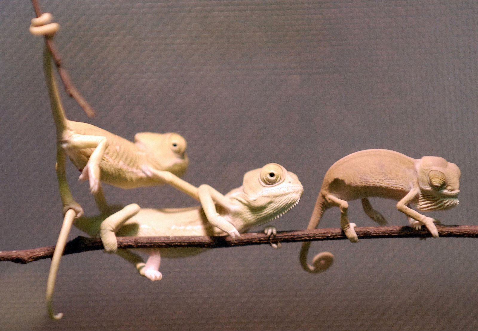 Früh übt sich ...rbb Fernsehen PANDA, GORILLA & CO., TEIL 138, "Geschichten aus dem Zoo Berlin und dem Tierpark Berlin", am Freitag (25.06.10) um 20:15 Uhr. Nachwuchs bei den Jemenchamäleons im Insektarium. Während die Großen in der Öffentlichkeit posieren, befinden sich die Kleinen im Kindergarten hinter den Kulissen.Bild: © rbb/Thomas Ernst