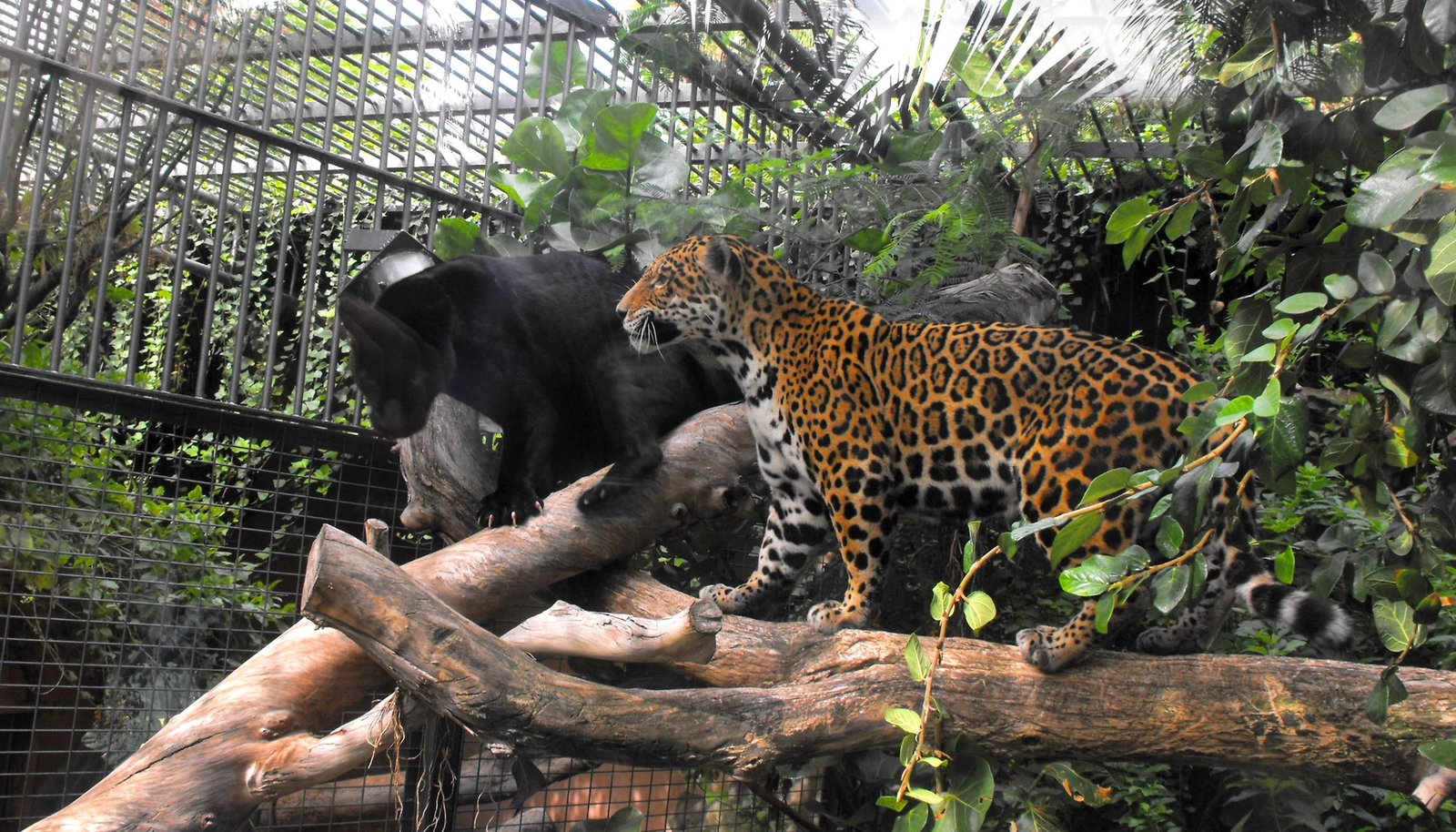 Der große IntelligenztestJaguare Negra (l) und Yellow- Nicht nur für die Otter, sondern auch für die Jaguare gibt es heute besonders frisches Futter - und zwar lebendige Fische! Mit den flotten Forellen wollen Heiner und Matthias prüfen, wie es um den Jagdtrieb der Raubtiere bestellt ist. Eine große Herausforderung für die wasserscheue Jaguardame Negra!Bild: © WDR/Loro Parque