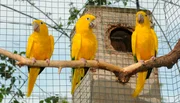 Wiedersehensfreude?Ein zahmer Goldsittich aus der Loro-Show ist vor einiger Zeit aus dem Loro-Park ausgebüchst. Jetzt ist er wieder aufgetaucht und trifft nach einem Jahr auf seine Artgenossen und Trainerin Montserrat. Wird er sich freuen, alle wiederzusehen?Bild: © WDR/Loro Parque