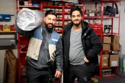 Wie Azubis Schindeln erneuern, Gruben graben und Gestank ertragenFliesenleger Mazlum (l, 26) und Fliesenleger-Azubi Ahmed (36) mit Werkzeug.Bild: © WDR/ume GmbH/Christine Alvarez