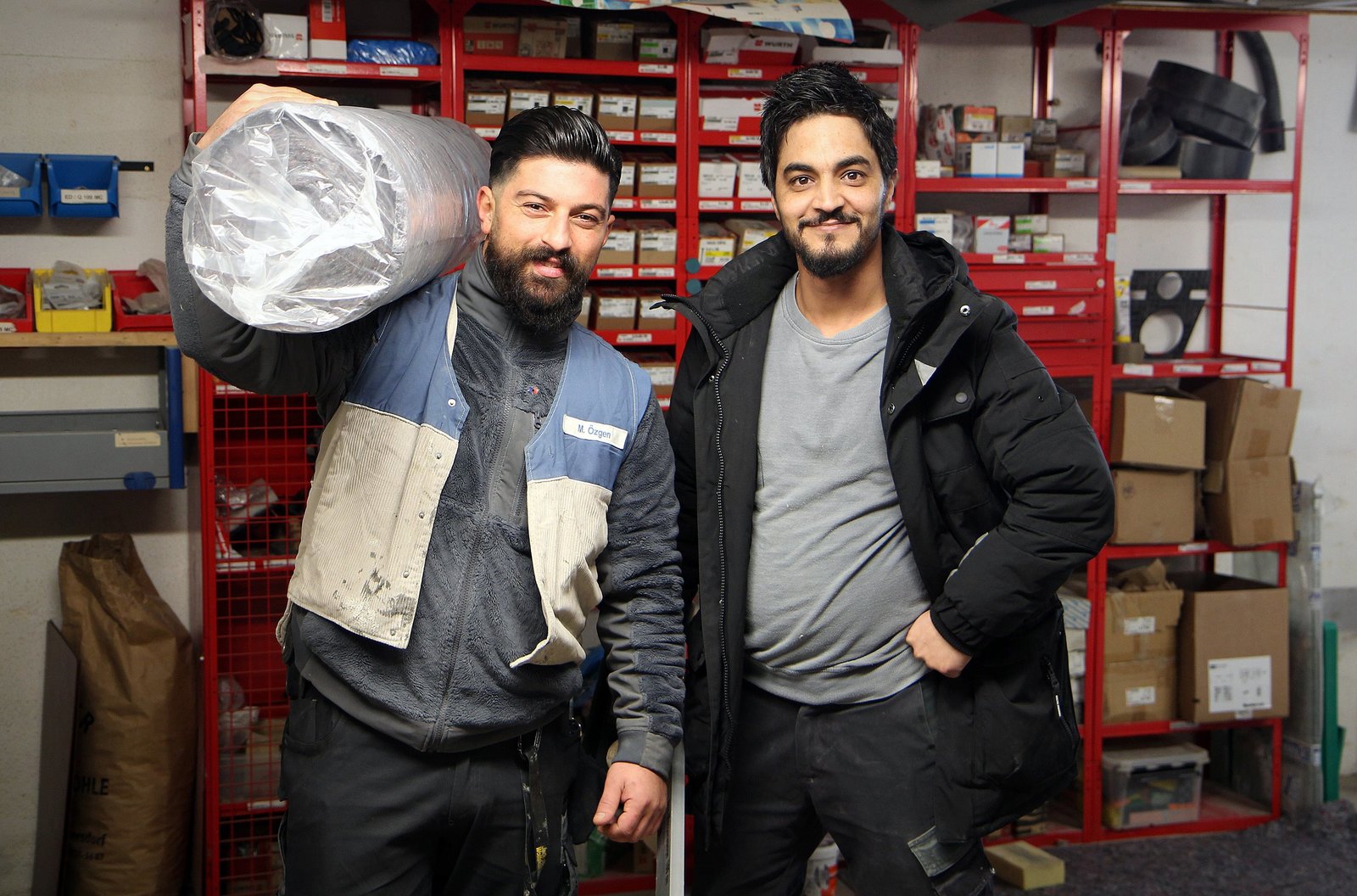Wie Azubis Wände verklinkern, Besen verkanten und dem Wetter trotzenSHK-Azubi Nick (l, 36) und Geselle Kevin (30) arbeiten gern zusammen und mögen die Vielfalt ihres Berufs.Bild: © WDR/Warner Bros. International Television Production Deutschland GmbH