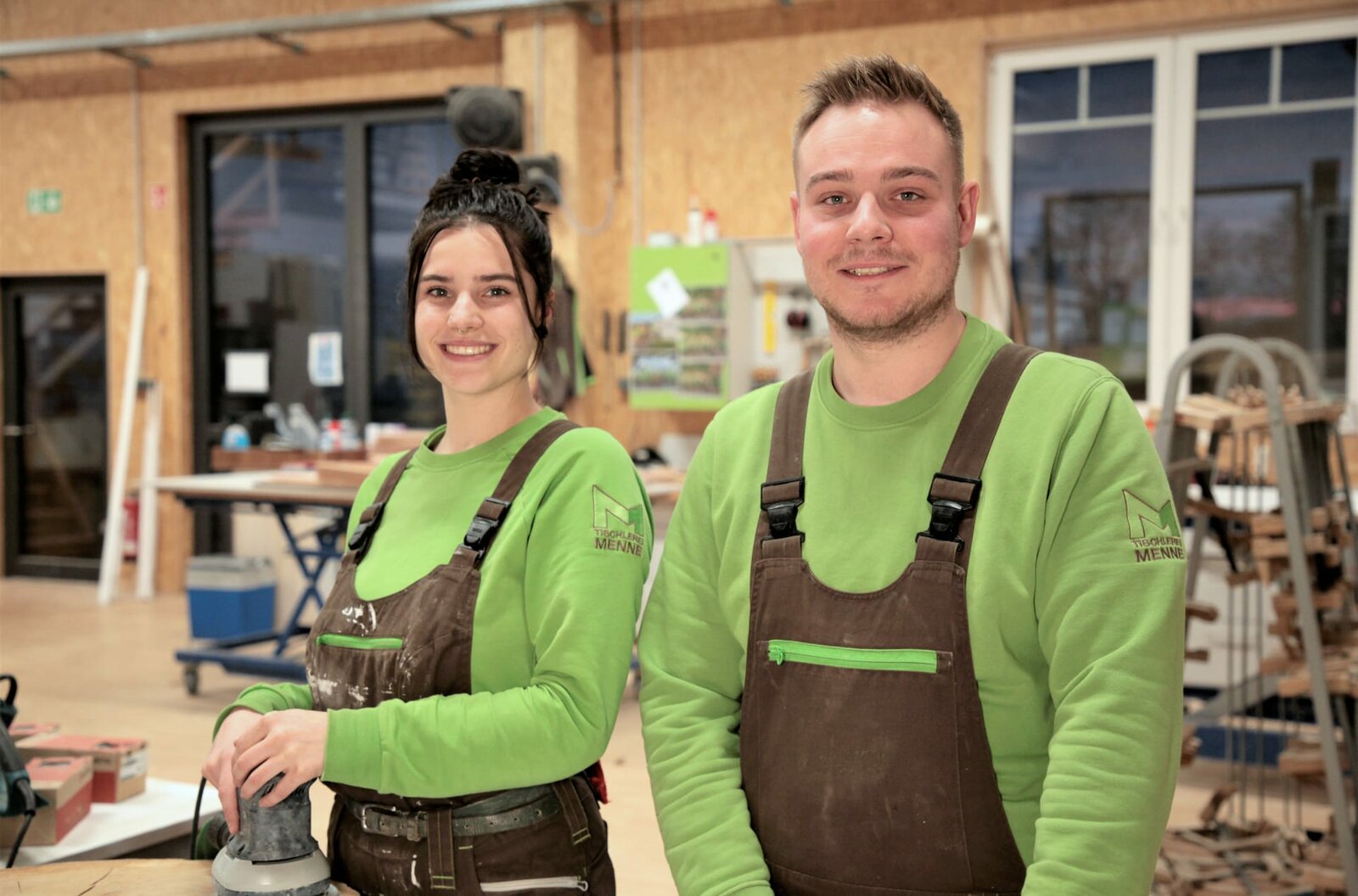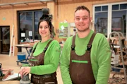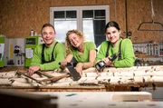 Wie Azubis Schindeln tackern, Steine metzen und Lötlampen entflammenTischlerin-Azubi Heather (l, 21) wird von Geselle Niklas (28) ausgebildet.Bild: © WDR/Warner Bros. International Television Production Deutschland GmbH