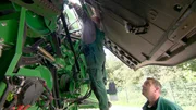 Gelernt ist gelernt: Azubi Jannis steckt bis über beide Ohren in der Maschine, begleitet von Ausbilder Christian – tägliche Routine bei der Ausbildung zum Land- und Baumaschinenmechatroniker.Bild: © WDR / WDR Kommunikation/Redaktion Bild