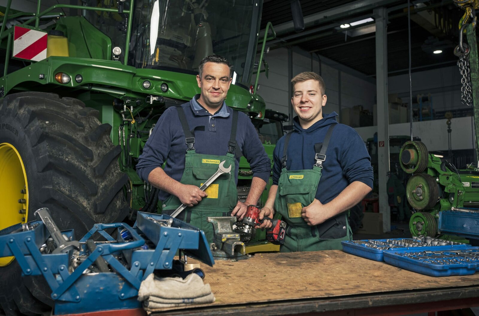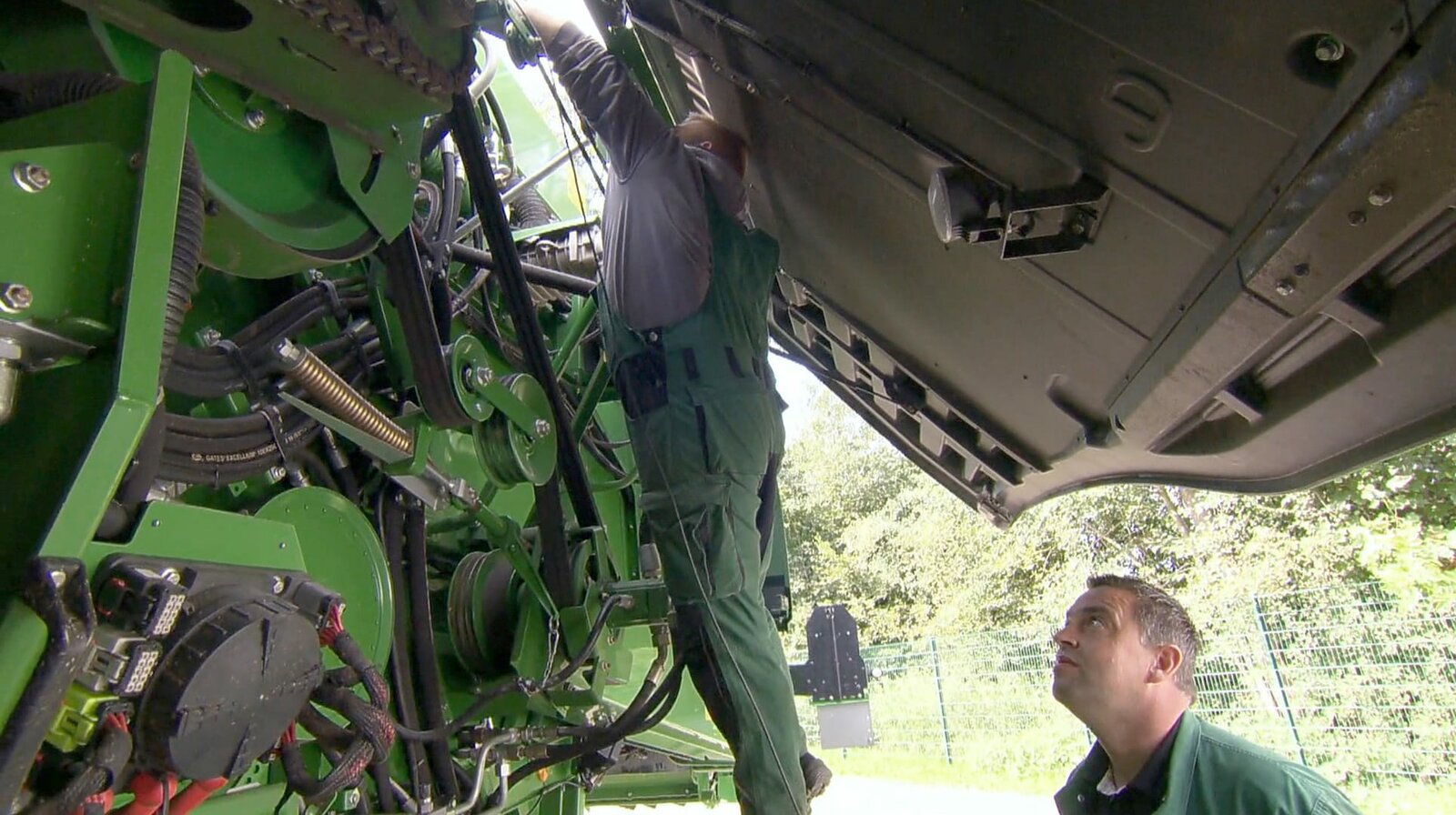 Messerscharf - Jannis checkt das Mais-GebissSie sind Azubis und sie lieben ihren Job. Was wird sie diesmal auf den Baustellen erwarten? Oft wachsen die Auszubildenden über sich hinaus, manchmal geht auch alles schief. Wo gehobelt wird, fallen eben Späne. Zum Glück sind ihre Ausbilder*innen, die Meister*innen und Gesell*innen, eng an ihrer Seite. - v.l.n.r. Christian (39 J.), Geselle für Landmaschinenmechatronik, Jannis (19 J.), Landmaschinenmechatroniker-Azubi im 4. Lehrjahr.Bild: © WDR/Ben Knabe / WDR Kommunikation/Redaktion Bild