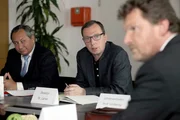 Lauter LügenARD PAUL KEMP - ALLES KEIN PROBLEM, neue Serie mit 13 Folgen, Folge 1 "Lauter Lügen" am Dienstag (10.06.14) um 20.15 Uhr im Ersten. Paul Kemp (Harald Krassnitzer, M.), von Beruf "Mediator", ist Spezialist im Schlichten von Streitigkeiten jeder Art. Er wird ins Allgemeine Krankenhaus gerufen um im Falle eines Kunstfehlers zu vermitteln. Im Bild mit seiner Büromanagerin Brigitte Mitlehner (Michou Friesz, l.) und dem Narkosearzt Dr. Erich Seifert (Gerhard Greiner, r.).Bild: © ARD/ORF/Petro Domenigg