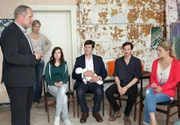 KindeswohlARD PAUL KEMP - ALLES KEIN PROBLEM, neue Serie mit 13 Folgen, Folge 11 "Kindeswohl" am Dienstag (19.08.14) um 20.15 Uhr im Ersten. Anwalt Schober gibt einen außergewöhnlichen Fall an Paul ab. Ein Mann will die Herausgabe des Babys einklagen, das die Schwester seiner Frau, liiert mit einem windigen Musiker, für diese als Leihmutter ausgetragen hat und nun nicht hergeben will. Nach und nach stößt Paul in eine dubiose Viererbeziehung vor, in der jeder seine wahren Interessen verheimlicht. Im Bild (v.l.n.r.): Paul Kemp (Harald Krassnitzer), Ella Kemp (Katja Weitzenböck), Regula Auner (Sabrina Reiter), Bernd Hofer (Andreas Kiendl), Ray Auner (Christopher Schärf), Judith Hofer (Magdalena Kronschläger).Bild: © ARD/ORF/Milenko Badzic