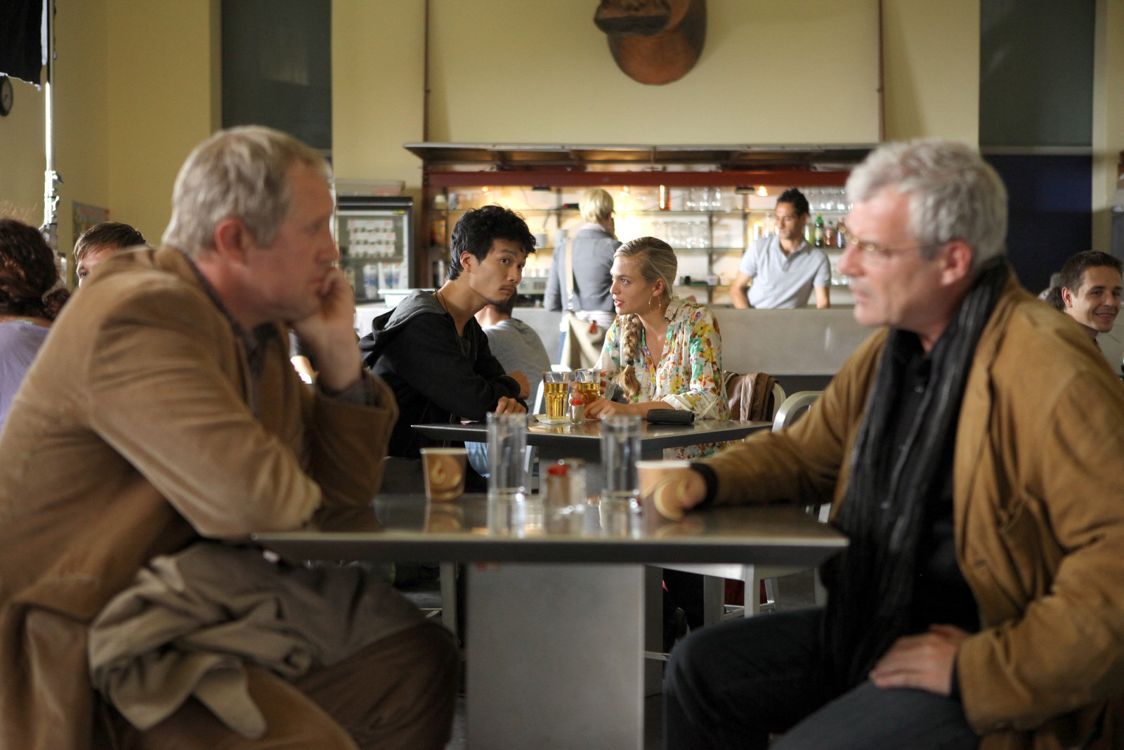 Freundschaft"Paul Kemp - Alles kein Problem", "Freundschaft." Zur Sanierung der Finanzlage seiner Praxis benötigt Paul Kemp dringend einen Kredit. Den jedoch verweigert ihm seine Bank. Paul ist ratlos. Ratlos ist auch Ella, als sie erfährt, dass sie schwanger ist. Das stellt ihren Plan wieder in Pauls Mediatoren-Praxis mitzuarbeiten stark in Frage. Doch in der Paartherapie kann und will sie dieses aktuelle Problem nicht bereden. Lisa hat sich mit einem üblen Trick an Pauls Bruder Luis heran gemacht und will so die Nähe zu Paul provozieren. Als Brigitte, die gute Seele von Pauls Praxis, erfährt, dass Ella hier einsteigen wird, streikt sie und es bedarf einiger Überredungskunst, sie wieder an den Arbeitsplatz zu bekommen. Ein Studienkollege Pauls, nun Professor an der Universität, hat ebenfalls Ärger an seinem Arbeitsplatz und ersucht Paul um Rat und Hilfe. Paul muss jedoch erkennen, dass ihn sein einstiger Freund bösartig belogen hat und der Fall ganz anders liegt.Im Bild (v.li.): Harald KrassnitzeBild: © ORF2