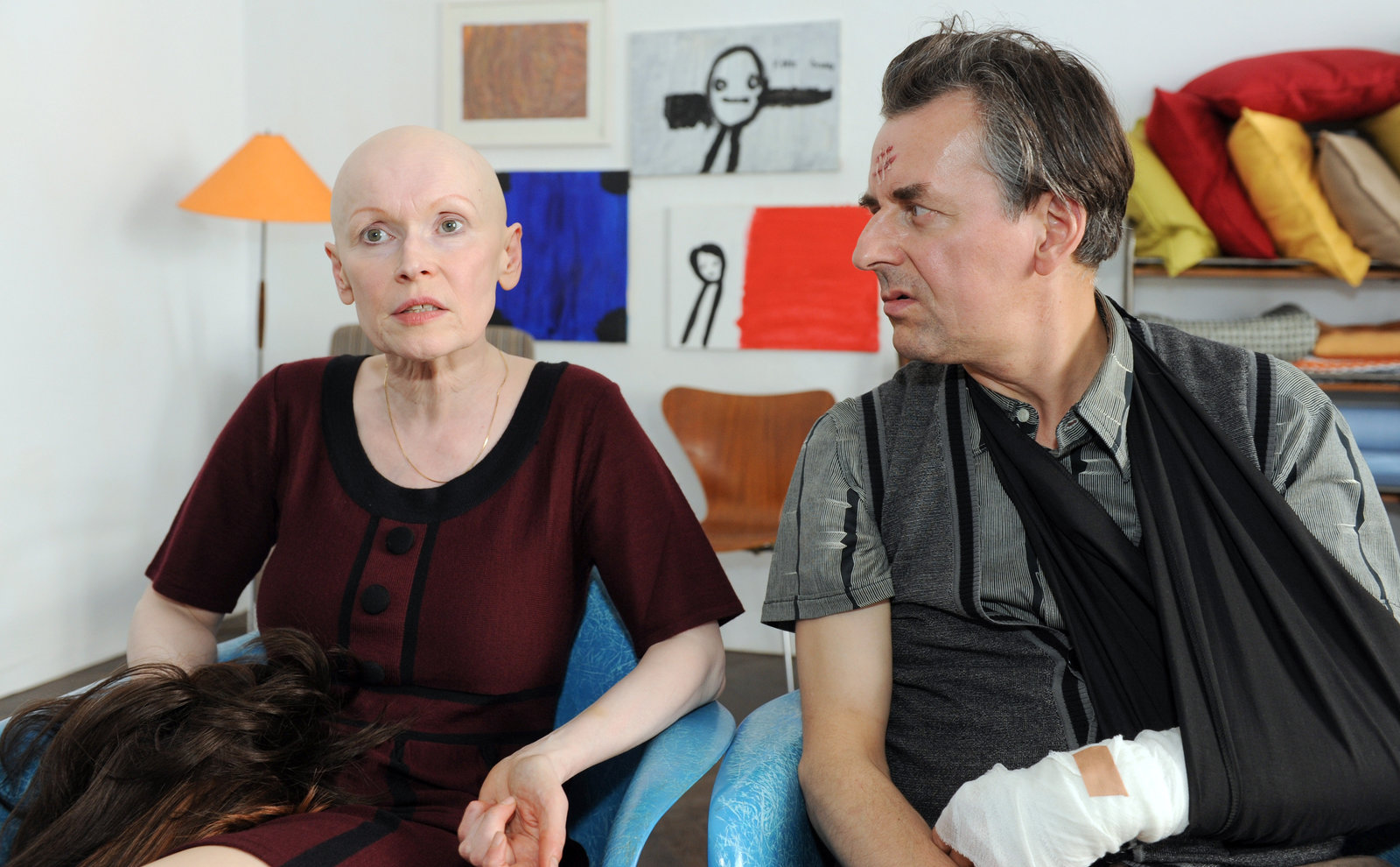 Spiel des Lebens"Paul Kemp - Alles kein Problem", "Spiel des Lebens." Böse Ahnungen verfolgen Paul in Bezug auf seine Trennung von Lisa. Die beginnen sich zu bewahrheiten. Lisa besucht Paul in der Mediatoren-Praxis und informiert ihn über ein mögliches Drogenproblem, das es bei ihrer Tochter gemeinsam mit Pauls Sohn Tim geben dürfte. Paul ist schockiert und geht der Sache nach. Beruflich wird Paul mit einem eigenartigen Fall von privatem Terror konfrontiert, den der Sohn einer reichen Fabrikantin an ihn heranträgt, gegen den Willen seiner Mutter, denn diese hat Angst, dass ihre ungeheure Lebenslüge aufgedeckt wird. Die Paartherapie scheint ihre Wirkung erzielt zu haben. Paul und Ella glauben wieder an den Sinn ihrer Ehe. Lisa versucht einmal mehr ihren Sinn in einer erzwungenen Beziehung zu Paul zu finden. Dieser hat aber begriffen, dass Lisa psychisch schwer krank ist.Im Bild (v.li.): Andrea Eckert (Martha Blumenfeld), Emily Cox (Manuela).Bild: © ORF2