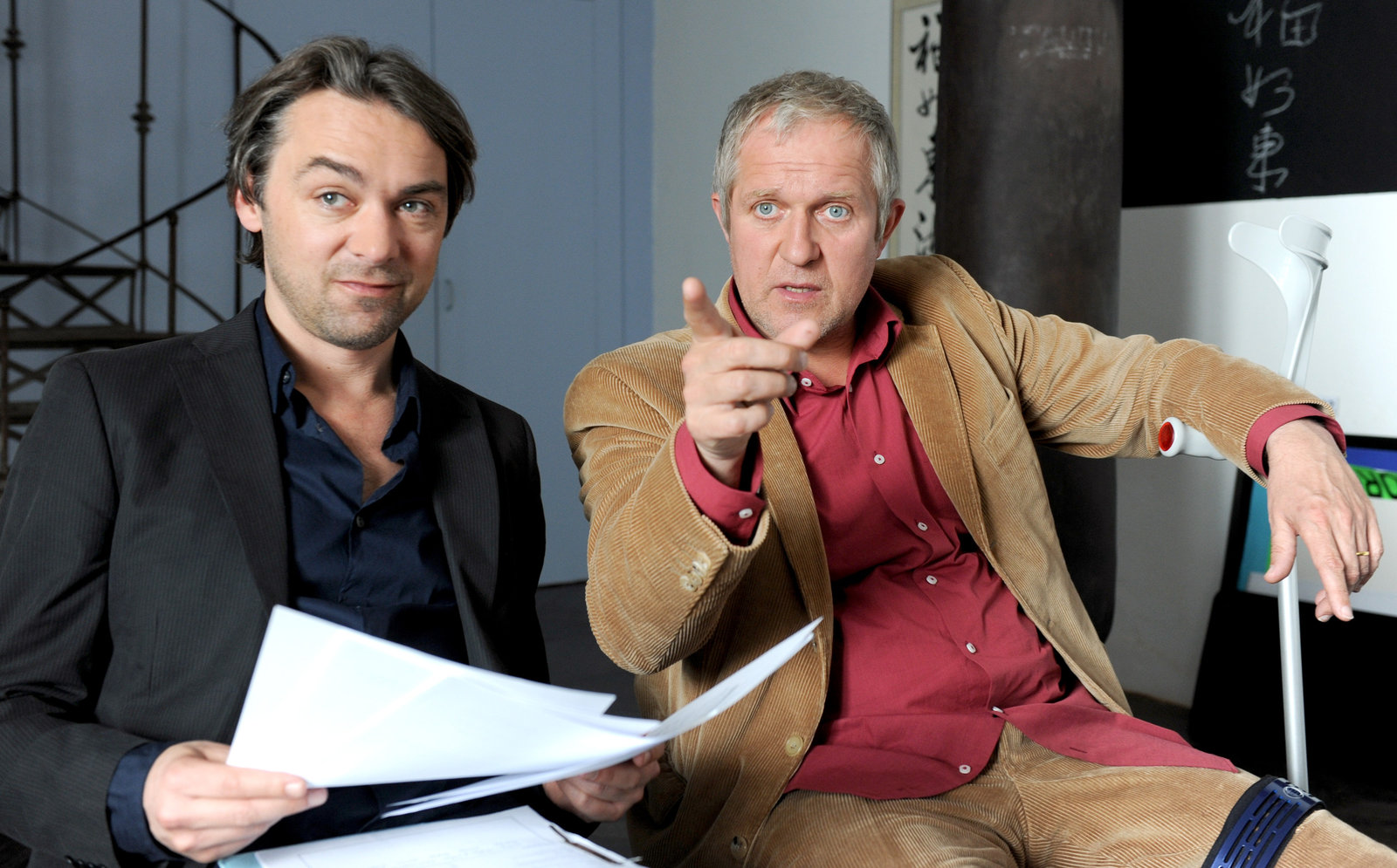 Die Hölle sind wir"Paul Kemp - Alles kein Problem", "Die Hölle sind wir." Mitten in die Mediation eines pikant-bösartigen Dreieckverhältnisses, die Kompagnon Mark völlig überfordert führt, platzt Paul Kemp und kann die gerade in eine Schlägerei ausartende Konfrontation schlichten. Doch schon steht der nächste Fall an, der sich besonders heikel entwickelt, da Paul ausgerechnet an jene Schule zur Schlichtung eines Mobbingfalles berufen wird, wo sein Nachbar und Liebhaber seiner Frau, Christian, Direktor ist. Den beruflichen Fall kann Paul nach unerwarteten Turbulenzen bereinigen, seine privaten Probleme aber vertiefen sich nach einer Konfrontation mit Christian. Als sich Pauls Mutter, sie konnte Ella nie leiden, beginnt in die Eheprobleme ihres Sohnes einzumischen, ist das der Beziehung gar nicht förderlich. Noch weniger soll dies aber Pauls Begegnung mit Lisa werden, der Mutter einer Schulfreundin seines Sohnes Tim.Im Bild (v.li.): Johannes Silberschneider (Wolfgang Fiala), Harald Krassnitzer (Paul Kemp).Bild: © ORF/Ali Schafler