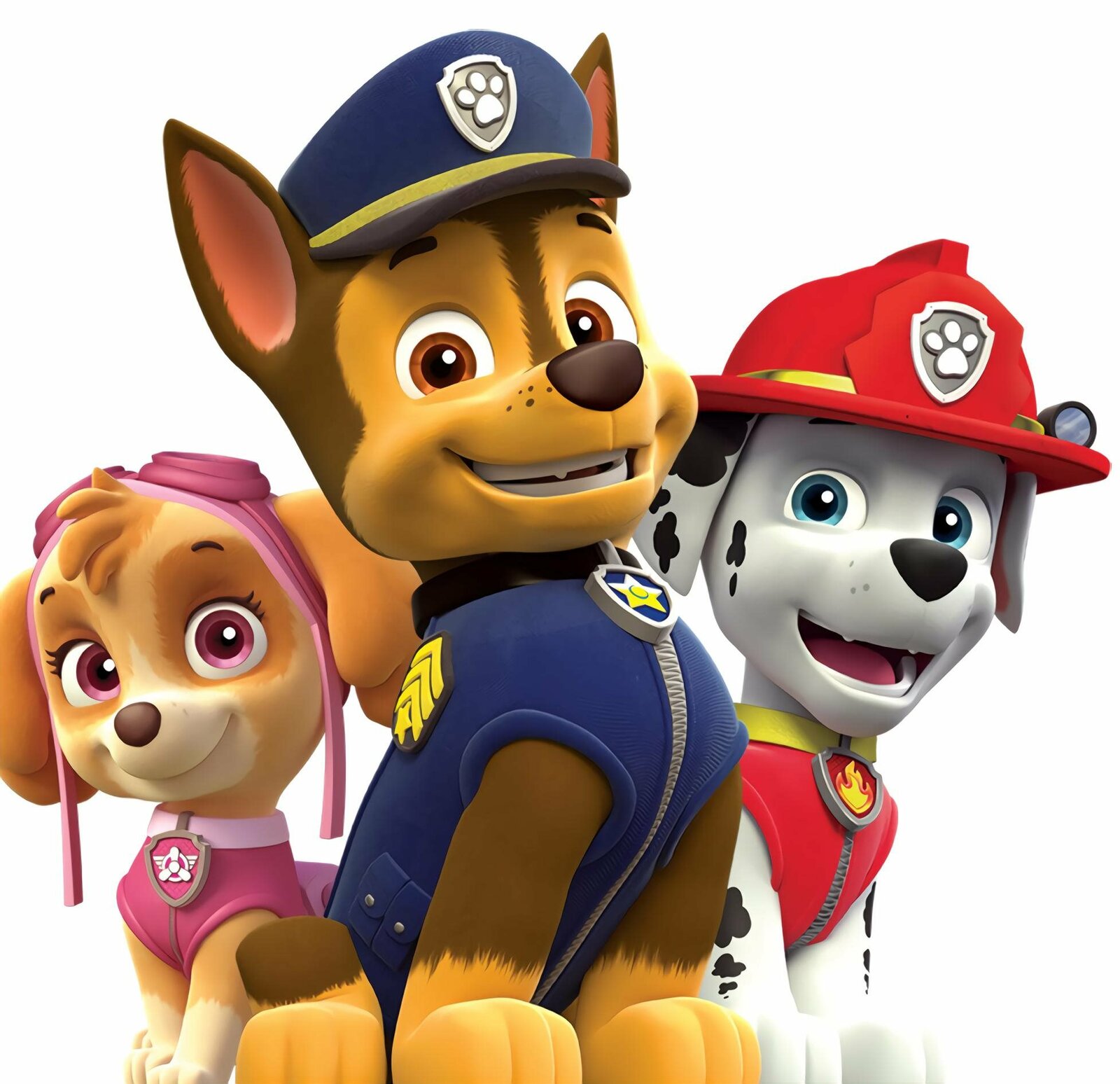 Rettet Luke StarsSie sind ein unschlagbares Team (v.l.): die immer lächelnde Skye, das stolze Polizeihündchen Chase und der tollpatschige Feuerwehrwelpe Marshall.Bild: © 2016 Spin Master PAW Productio