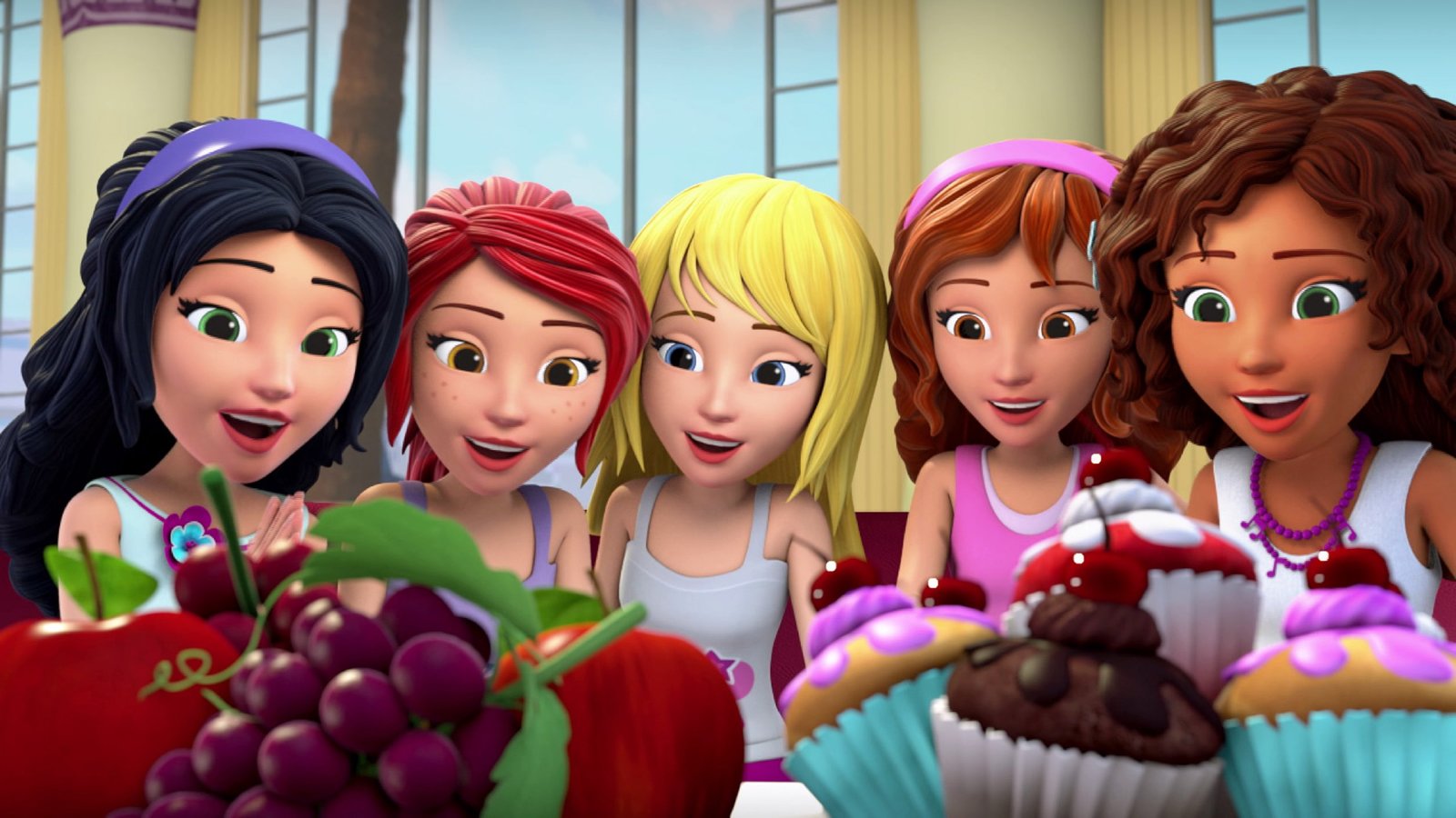 Die Hunde bergen den Paw PatrollerEmma, Mia, Stephanie, Olivia und Andrea (v. li. n. re.) staunen über den Luxus im "Großen Hotel".Bild: © SUPER RTL