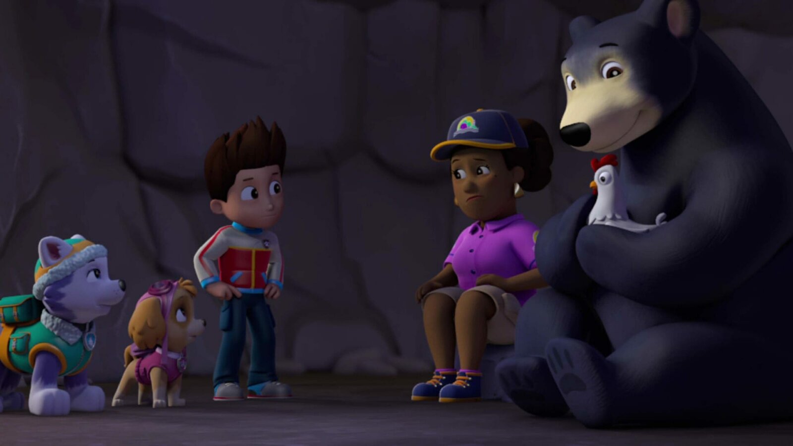 Der Stein aus dem AllL-R: Everest, Skye, Ryder, Mayor Goodway, bear, ChickalettaBild: © ViacomCBS