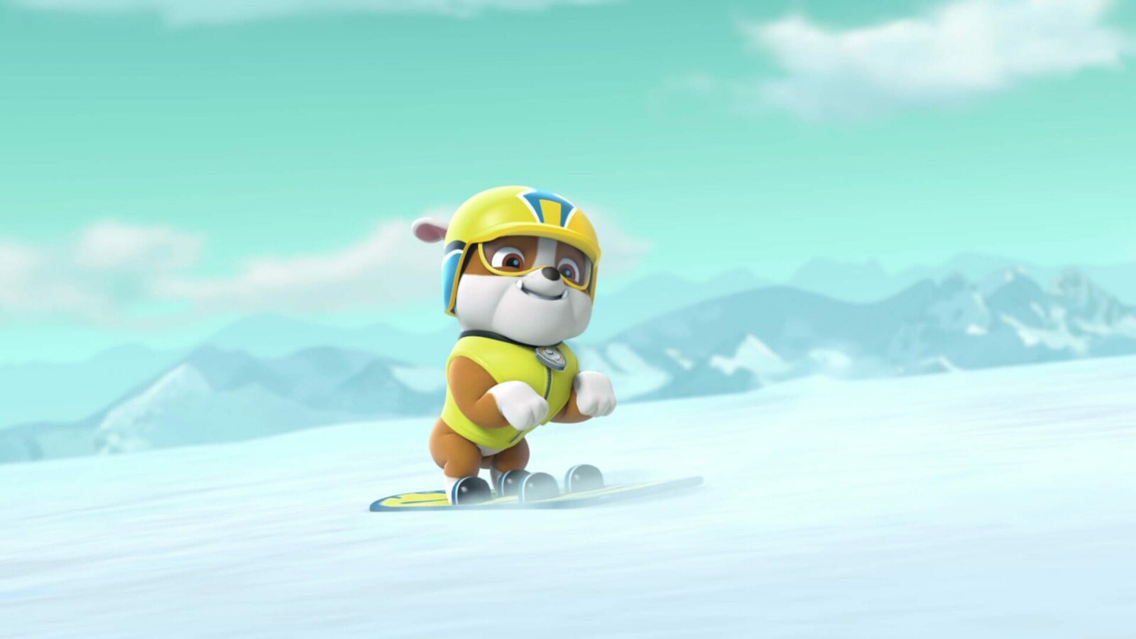 Der Snowboard-WettbewerbSie sind ein unschlagbares Team (v.l.): die immer lächelnde Skye, das stolze Polizeihündchen Chase und der tollpatschige Feuerwehrwelpe Marshall.Bild: © 2016 Spin Master PAW Productio
