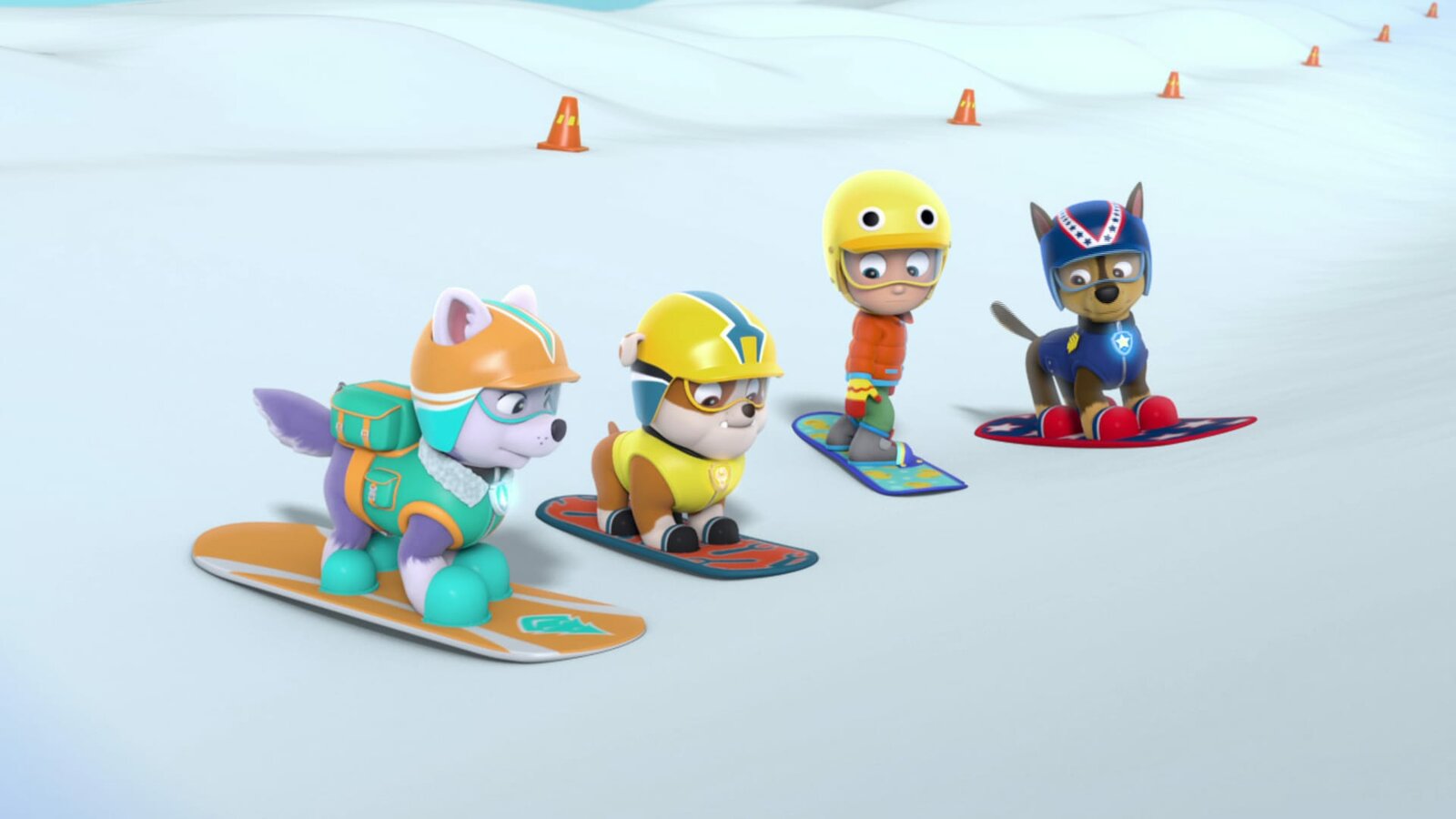 Der Snowboard-WettbewerbL-R: Everest, Rubble, Alex Porter, ChaseBild: © ViacomCBS