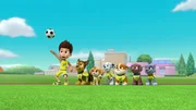 Das FußballspielL-R: Ryder, Chase, Skye, Marshall, Rubble, Zuma, RockyBild: © ViacomCBS