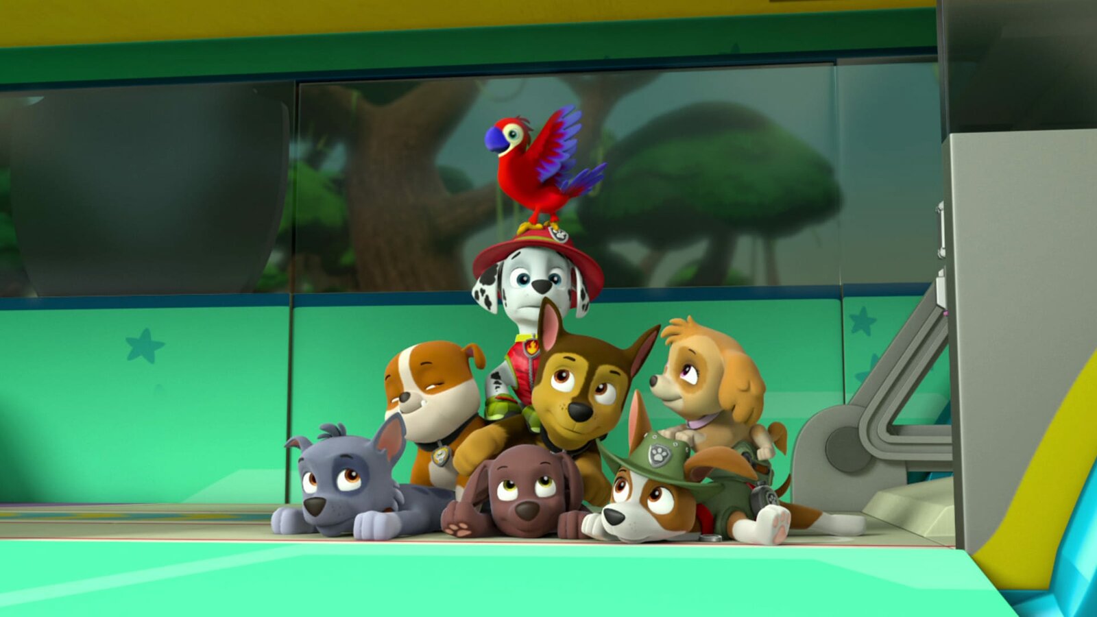 Der sprechende PapageiL-R: Rocky, Rubble, Zuma, Marshall, Matea, Chase, Tracker, SkyeBild: © ViacomCBS
