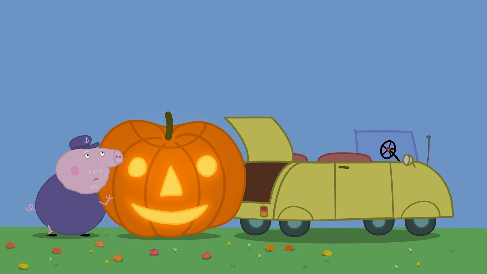 Der KürbiswettbewerbJetzt muss Opa Wutz den Kürbis nur noch in seinem Auto verstauen..Bild: © SUPER RTL