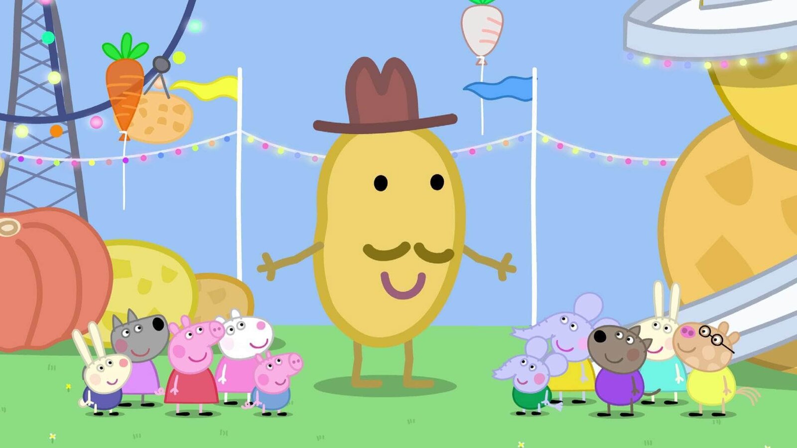 Die KartoffeltraumstadtMister Kartoffel begrüßt Peppa und ihre Freunde.Bild: © SUPER RTL