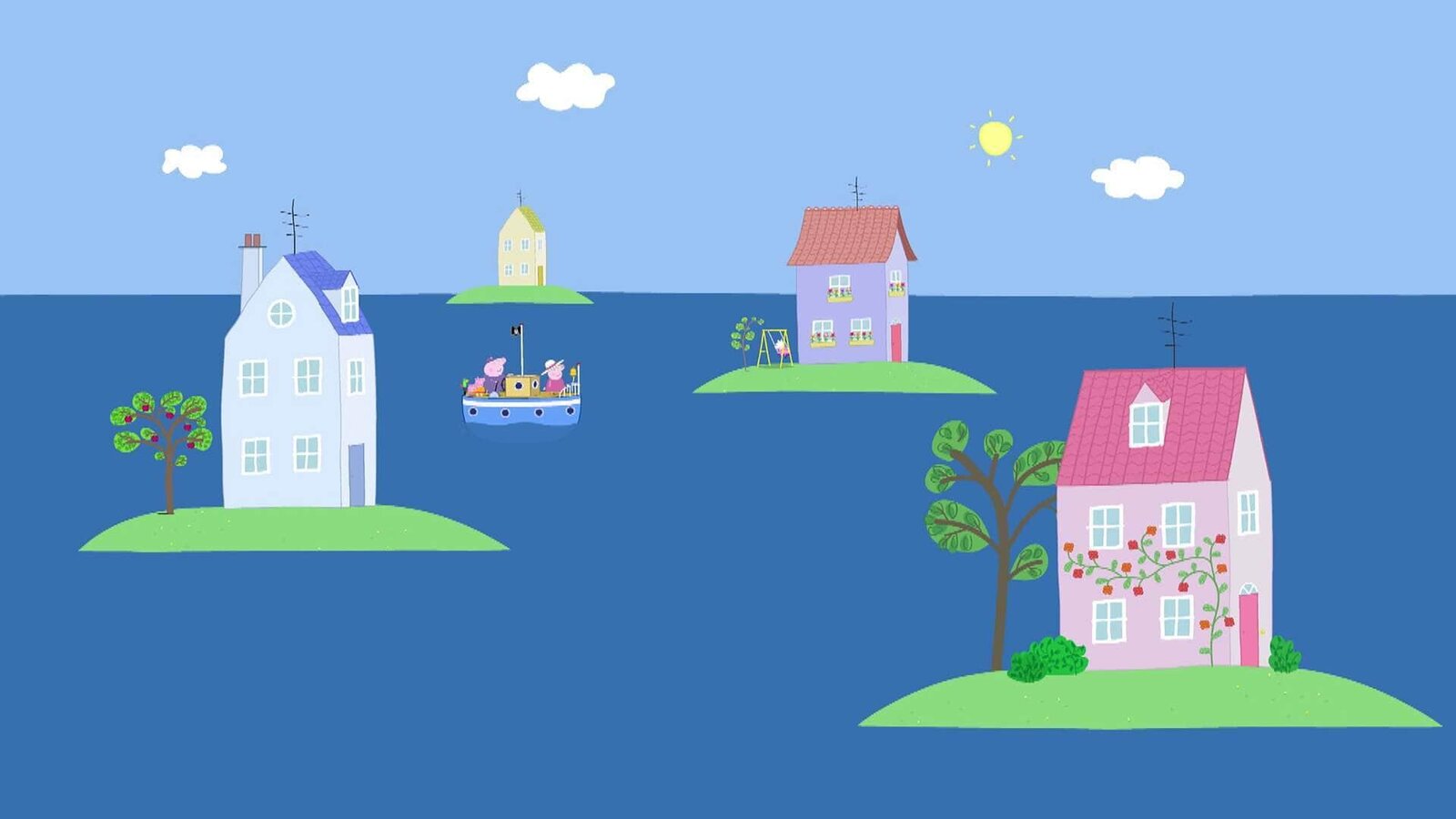 Die größte Matschpfütze der WeltAls Peppa und George eines Morgens aufwachen, hat der Regen das ganze Land überschwemmt.Bild: © SUPER RTL