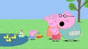 Opi Mümmels SaurierparkPeppa (r.) und ihr kleiner Bruder wollen ins Entenland, um die Enten am Fluss zu besuchen.Bild: © Contender Entertainment
