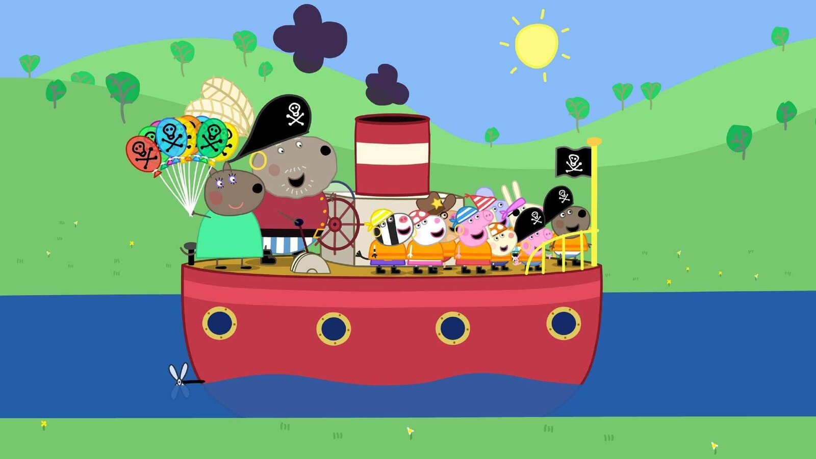 Das SegelbootMitten auf See begegnen Opa Wutz, Peppa und Schorsch einigen anderen Leichtmatrosen.Bild: © SUPER RTL