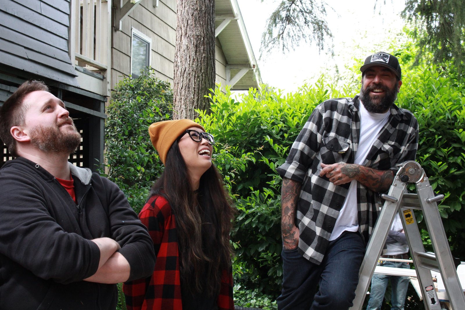 Taffys BaumhausJared Pedea, Grace Lee, and Antonio Ballatore laughing at Travis Farber (not pictured).Bild: © Animal Planet / Discovery Communications