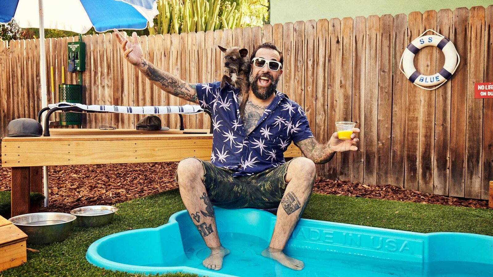 Hundeparadies im GartenAntonio Bellatore with dog Edie laying on grass.Bild: © Tim Ronca / Animal Planet / Discovery, Inc.