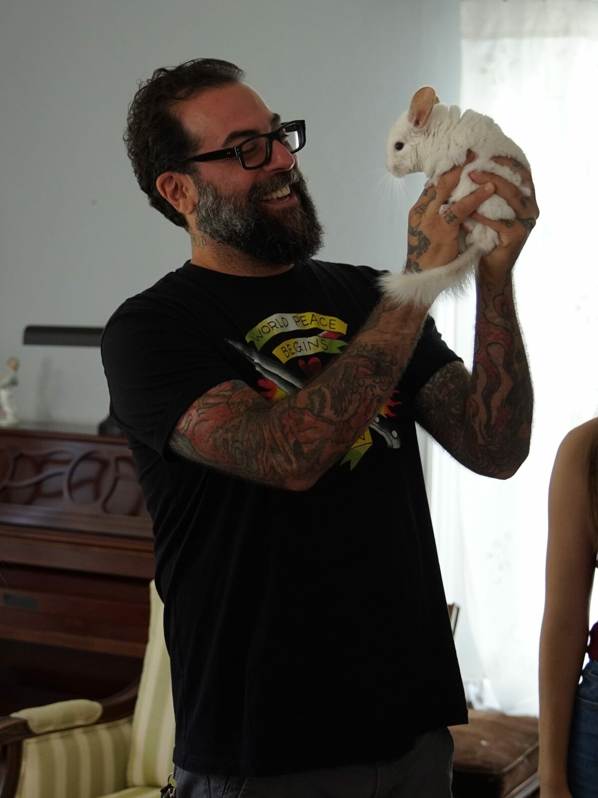 Ein eigenes Zimmer für die ChinchillasAntonio Ballatore holds up Giuseppe the chinchilla.Bild: © Tim Ronca / Animal Planet / Discovery, Inc.