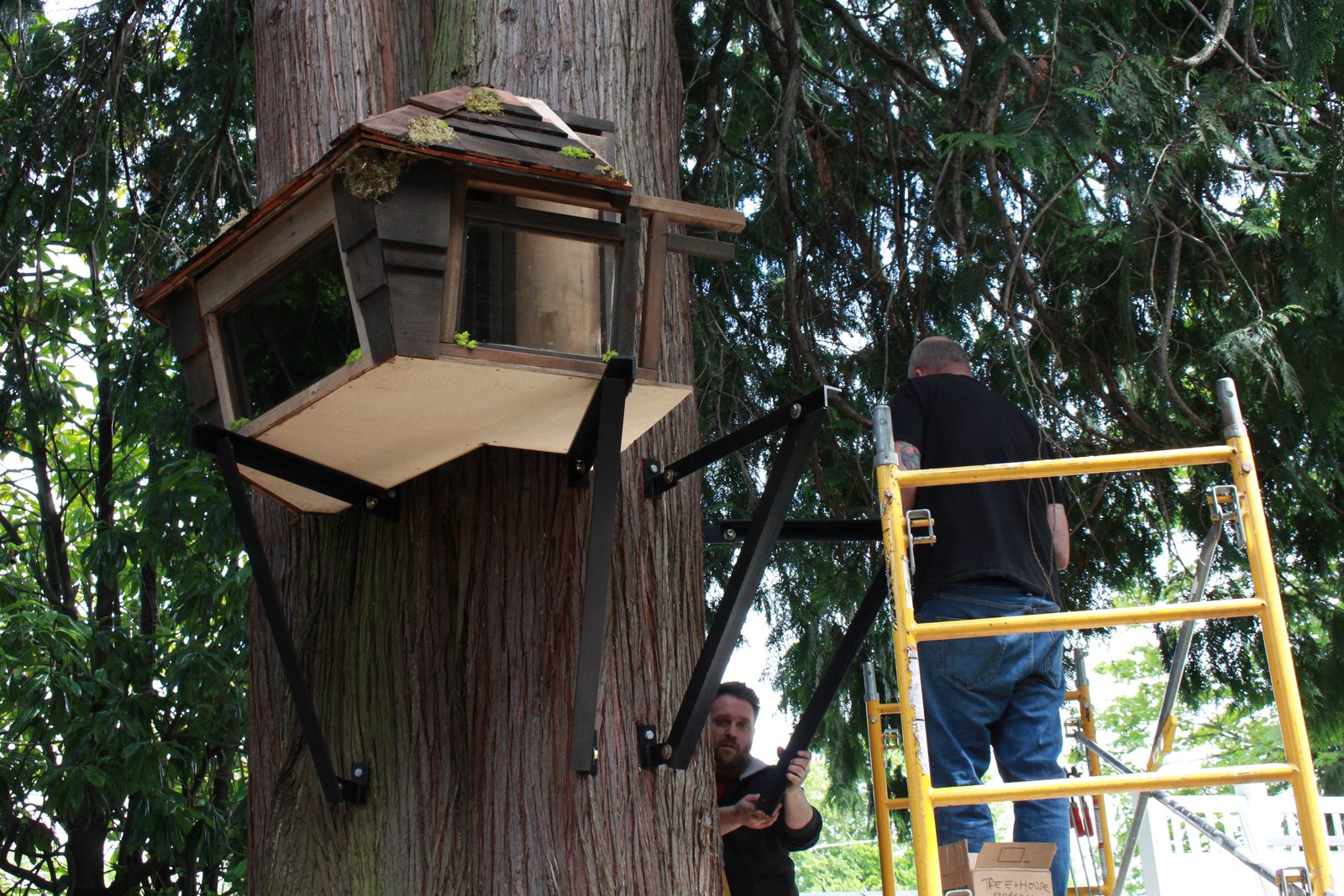 Taffys BaumhausJared Pedea helps Travis Farber mount support beams.Bild: © Animal Planet / Discovery Communications