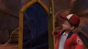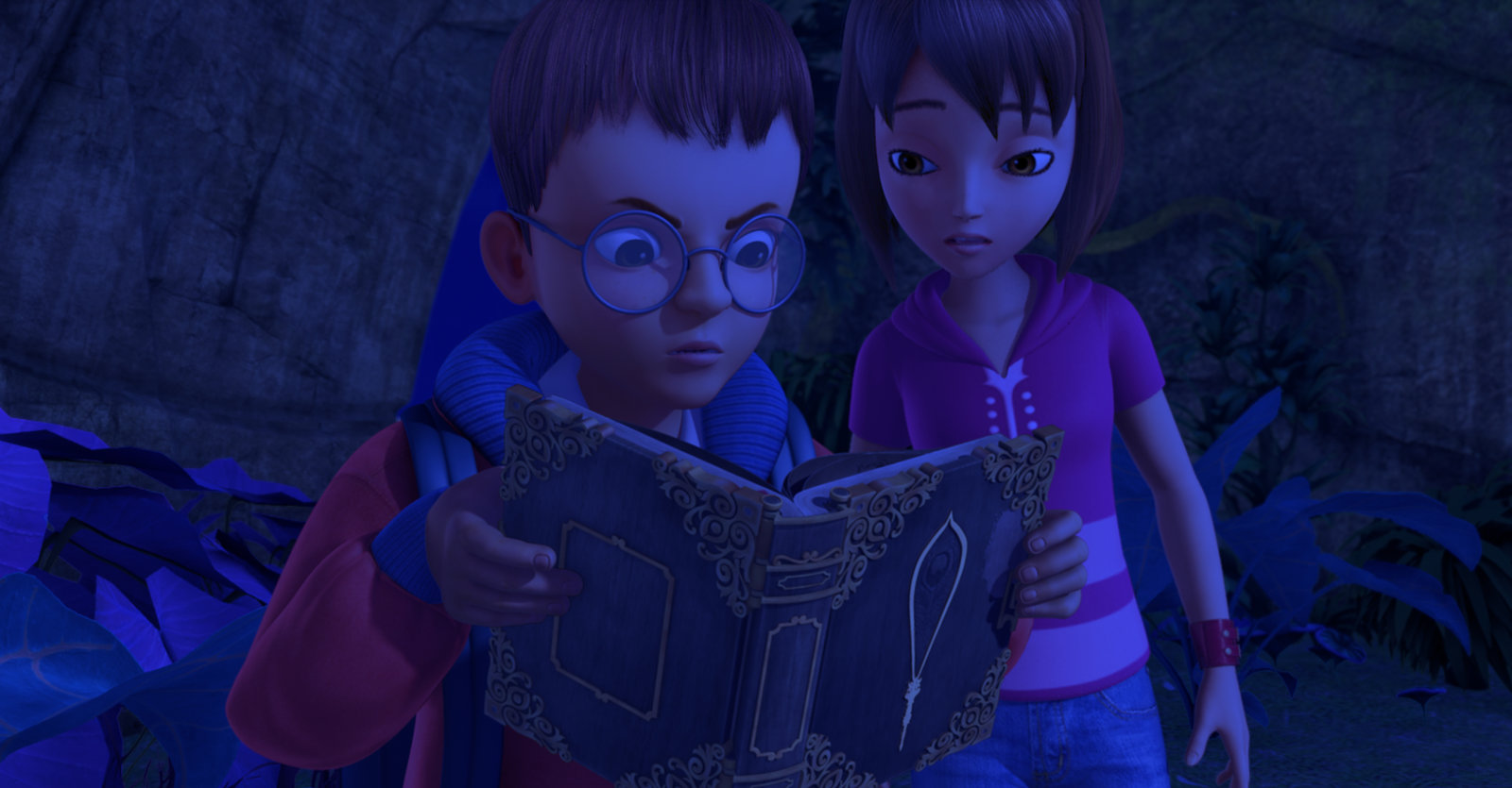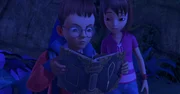 Die MonstertürJohn und Wendy sind von der Monstertür verschlungen worden und nun in der Nachtwelt gefangen. Im Großen Buch hofft John, einen Hinweis zu finden, der ihnen wieder hinaus hilft.Bild: © ZDF und (c) 2014 DQ Entertainment