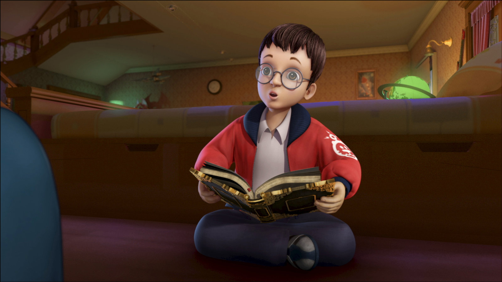 John, der HeldJohn liest im Verwunschenen Buch alles Wissenswerte über den Verwunschenen Sumpf.Bild: © ZDF/method Film/DQ Entertainment