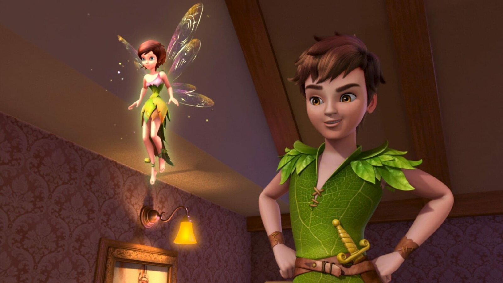 Michaels AlbtraumPeter Pan und die Elfe Tinker Bell in Vorfreude auf Nimmerland.Bild: © ZDF und (c) 2012 DQ Entertainment