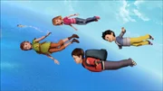 Die große SchatzjagdDas Mädchenteam mit Tinker Bell (hinten l.), Wendy (hinten M.) und Lily (hinten r.) ist dem Jungenteam mit Michael (vorne l.), Peter Pan (vorne M.) und John (vorne r.) dicht auf den Fersen. Wer wird wohl gewinnen?Bild: © ZDF und (c) 2014 DQ Entertainment