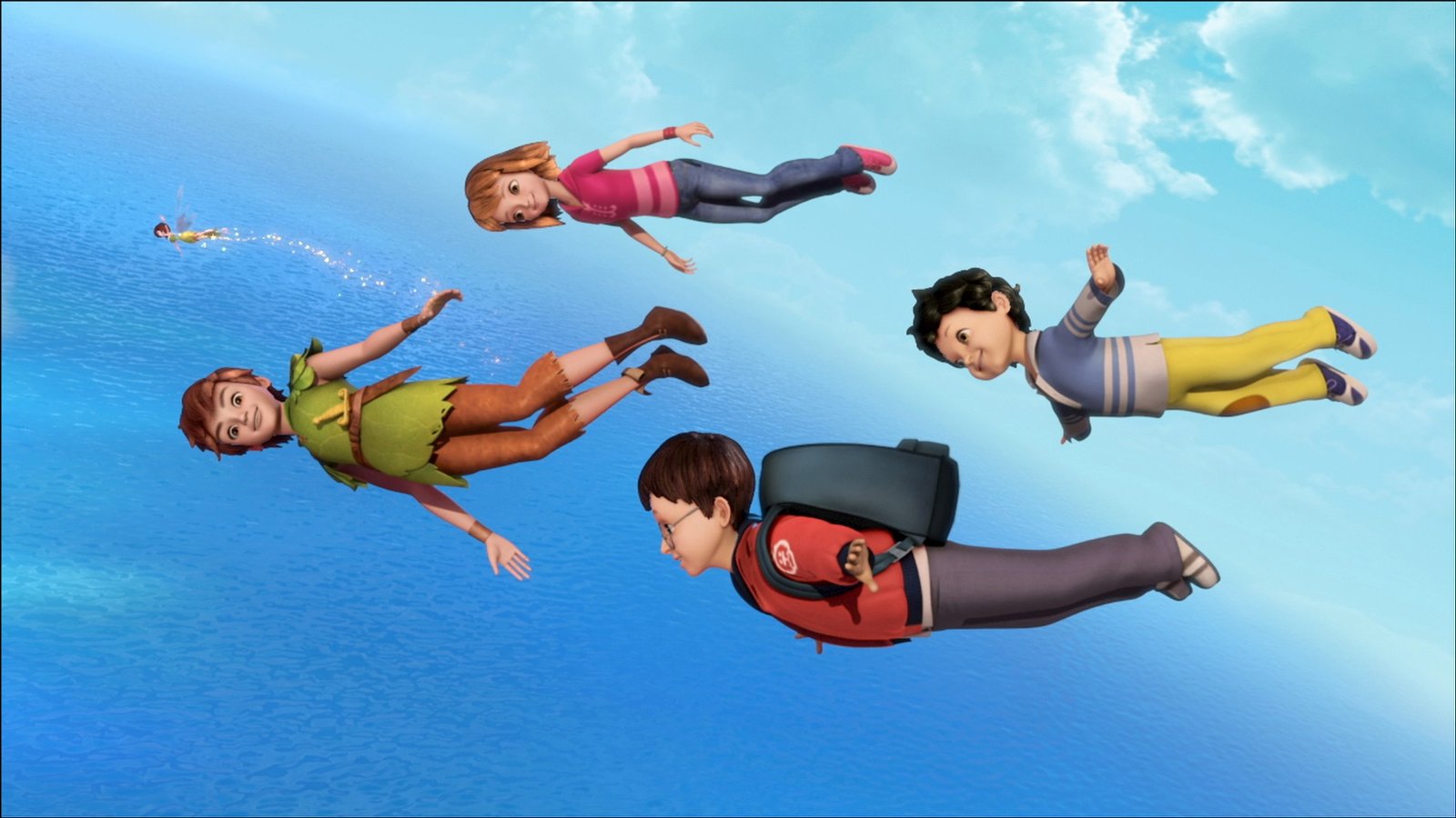 HausputzPeter Pan, Wendy, John und Michael sind zusammen mit TinkerBell auf dem Luftweg nach Nimmerland.Bild: © ZDF/method Film/DQ Entertainment