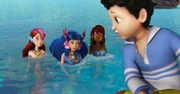 Gefährliches LagunenwasserMichael sitzt traurig bei der Lagune der Meerjungfrauen. Die überreden ihn, vom verzauberten Lagunenwasser zu trinken.Bild: © ZDF/2014 DQ Entertainment