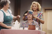 Alois, wo warst du heute Nacht?Cilli (Erna Wassmer, l.), Alois Rieger, Bauer (Peter Steiner, 2.v.l.),Martl (Winfried Frey3.v.r.), Bessy, Tonis Frau (Petra Auer, 2.v.r.), Toni (Rudi Decker, 1.v.r.)Bild: © Heimatkanal (DE)