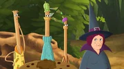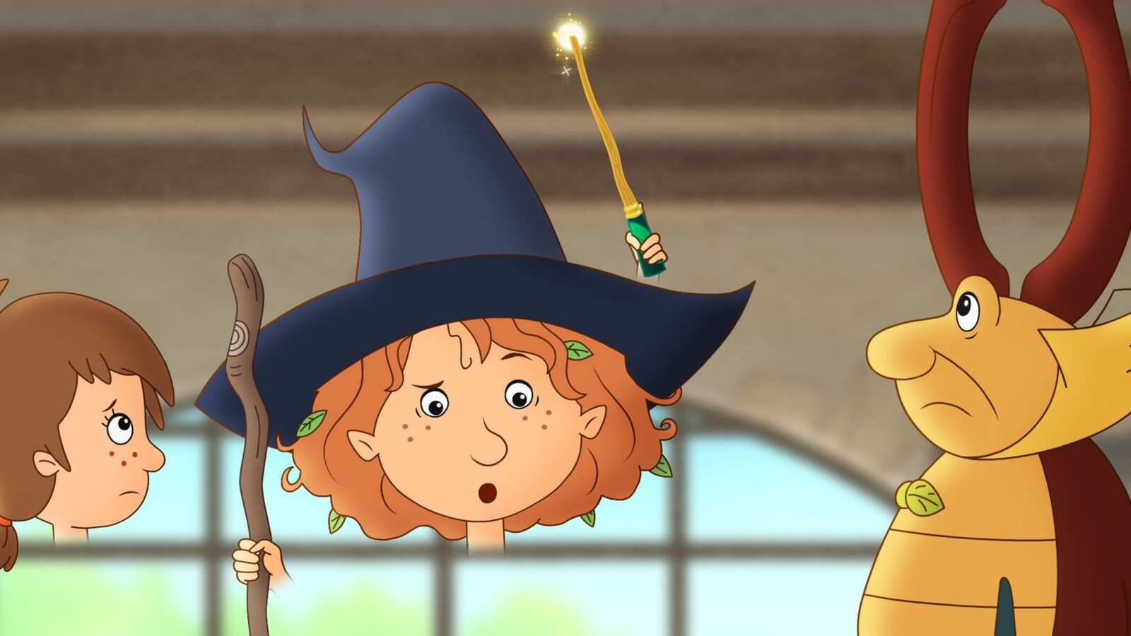 Der OberhexenbesenOberhexe Pestilla ist sehr skeptisch: Ob die Apfelmännchen ihren Besen reparieren können?Bild: © ZDF/Akkord Film/Bastei Lübbe AG