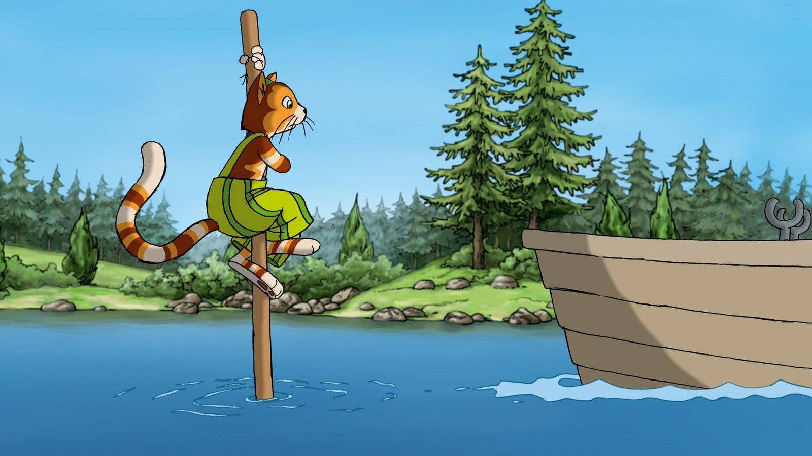 Das Denk-Dran-TaschentuchPettersson und Findus haben beim Angeln Pech gehabt: Sie sind ins Wasser gefallen.Bild: © ZDF/2021 Edel Germany GmbH