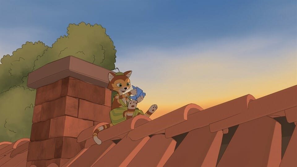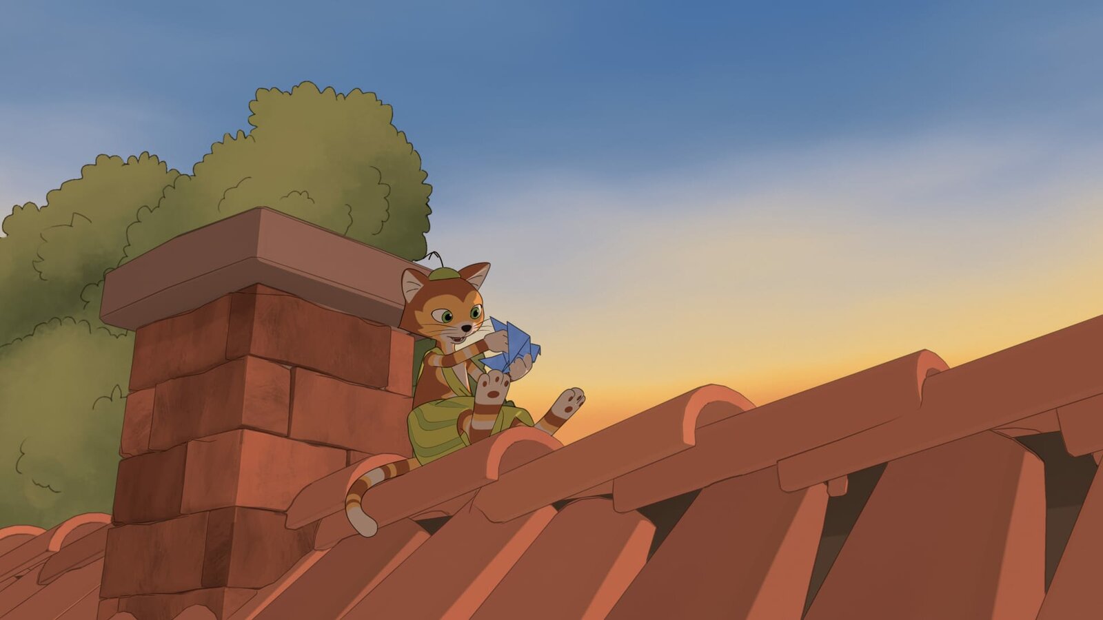 Die tote ElsterIm Abendlicht denkt Findus an die tote Elster und bastelt zu ihrer Erinnerung einen kleinen Papierflieger.Bild: © ZDF/2021 Edel Germany GmbH
