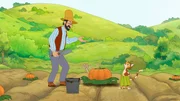 Die tote ElsterPettersson und Findus hoffen, dass ihr Kürbis mit dem Dünger aus Hühnerkot einen besonderen Wachstumsschub bekommt.Bild: © ZDF/2021 Edel Germany GmbH