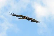 Der Kaindy-See - Kasachstans KleinodEin junger Bartgeier fliegt über die kasachischen Gebirge, die Hunderte Gletscher beheimaten.Bild: © ARTE / © French Connection Films/Duo2 TV/Ushuaia TV