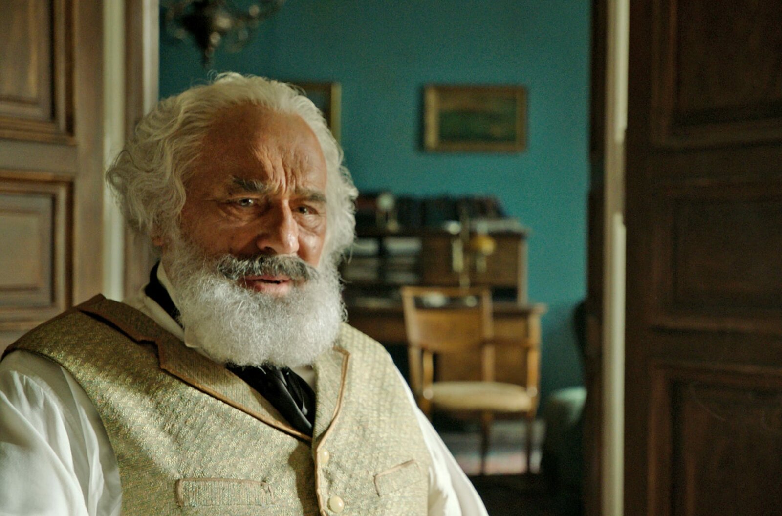 Eleanor (Sarah Hostettler) und Karl Marx (Mario Adorf) vor der Abreise aus Paris.Bild: © phoenix/ZDF/Julie Vrabelova