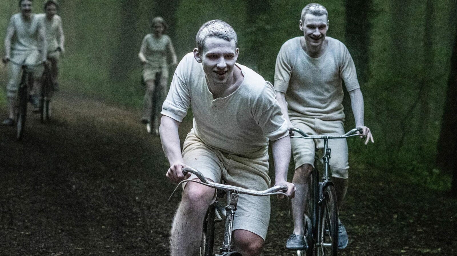Ike (Jakub Sprenger, 2.v.r.) und Sam (Marek Wroblewski, r.) fahren mit den gestohlenen Fahrrädern der englischen Jungen durch den Wald und spüren die neue Freiheit.Bild: © phoenix/ZDF/HELEN SLOAN SMPSP