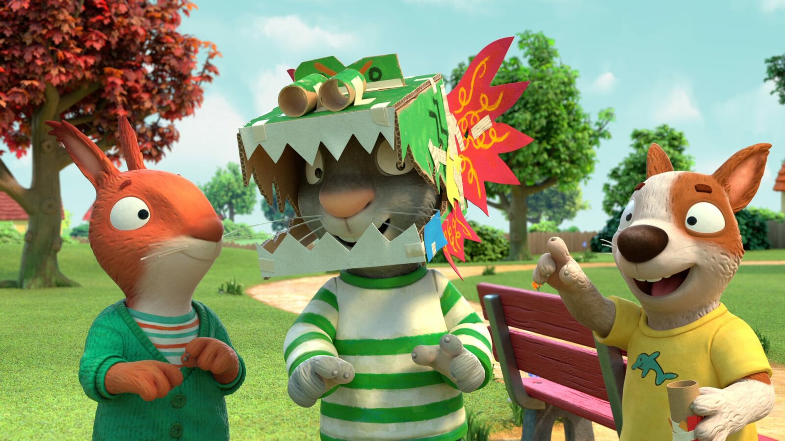 Das DrachenabenteuerPip hat den Drachenkopf gebastelt und darf deshalb als erster der wilde Drache sein.Bild: © ZDF/Magic Light Pictures LTD 2021