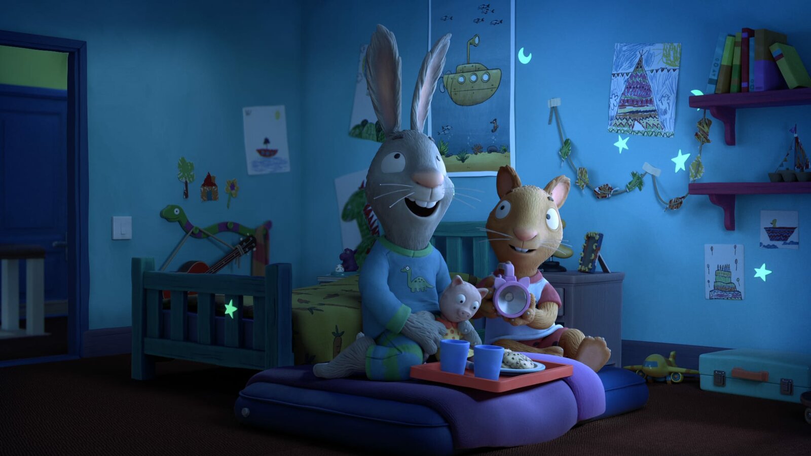 Nacht PipDanke Posys guter Idee, viele leuchtende Sterne im Schlafzimmer zu platzieren, fühlt sich Pip gleich besser.Bild: © ZDF und (c) Magic Light Pictures LTD 2021.